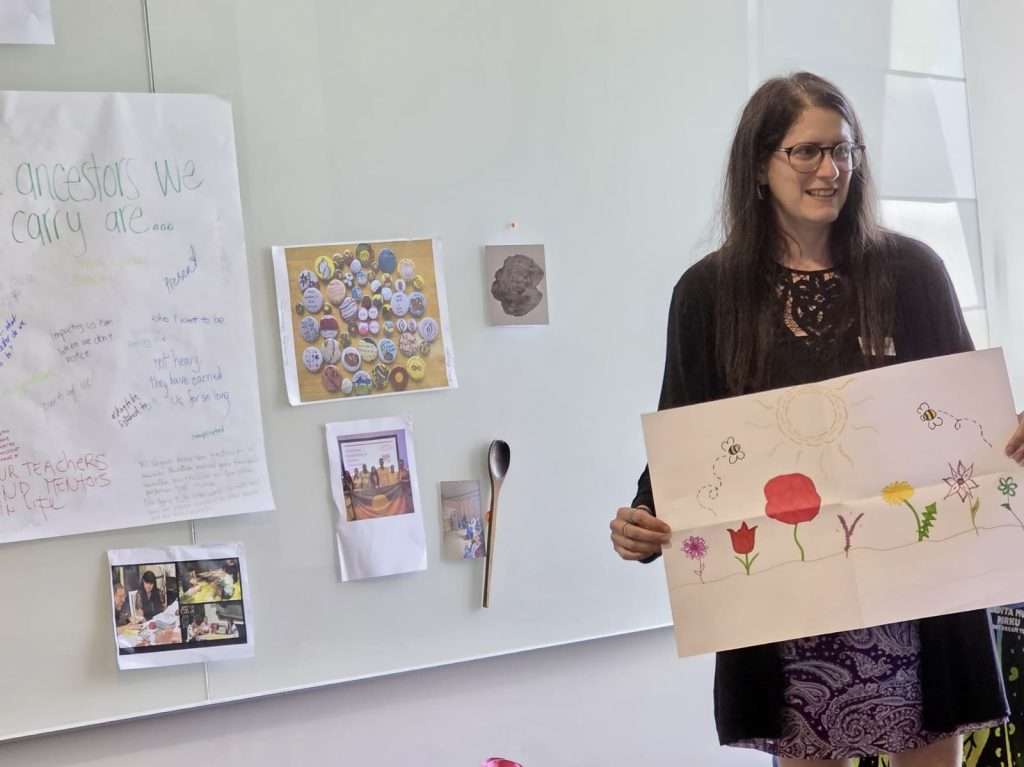 “Fue un Workshop con un enfoque muy participativo y decolonial, donde el primer paso es siempre situarse, contar desde dónde habla una, cuál es su historia y su recorrido. Se suele reconocer a los ancestros, a lo cual yo agregué un reconocimiento explícito a mis estudiantes y equipos de investigación e intervención con un cartel que les representaba”, explicó Daher.